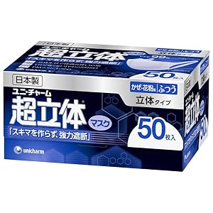 (日本製 PM2.5対応)超立体マスク かぜ・花粉用 ふつうサイズ 50枚入(unicharm)